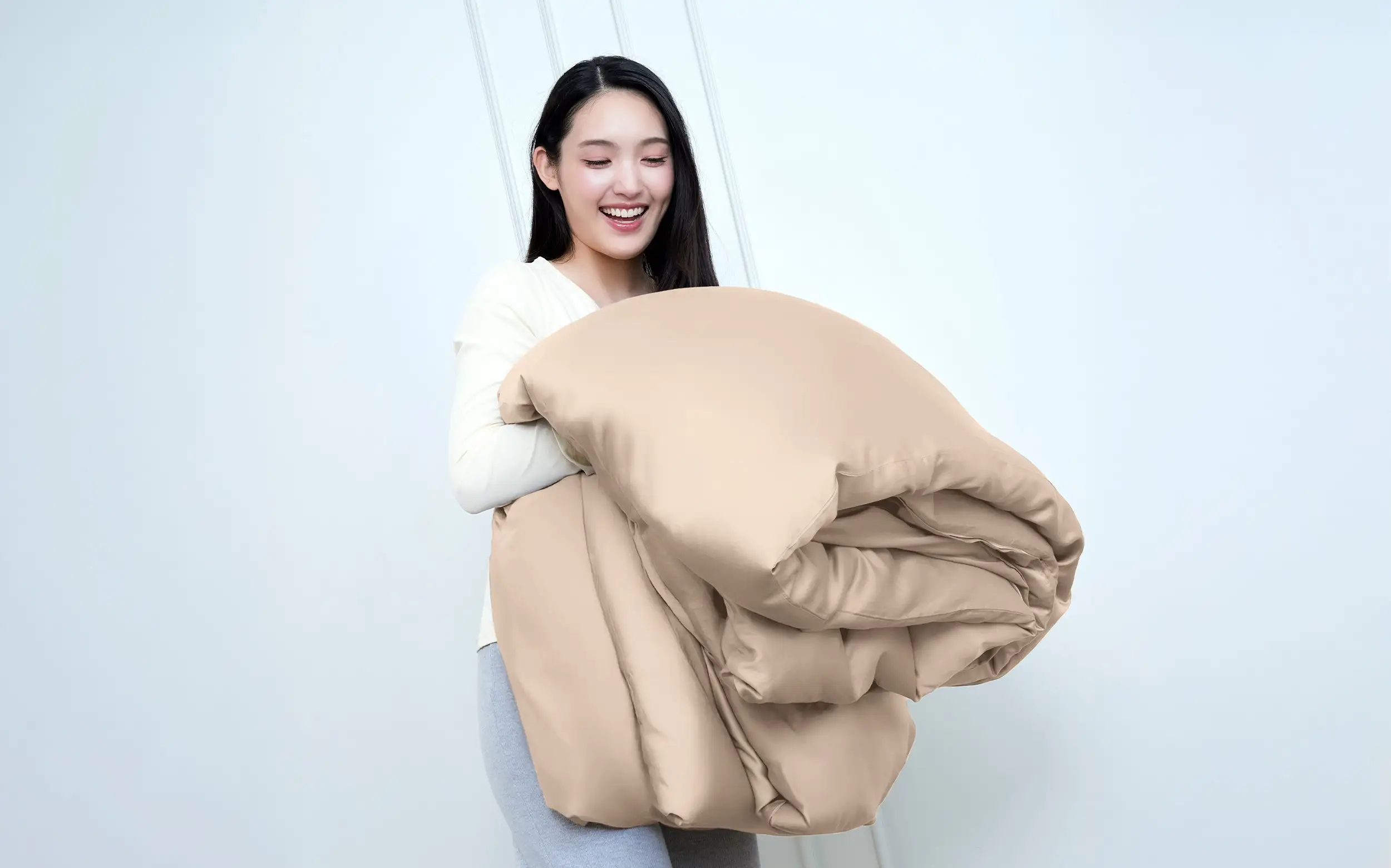 100% 純天絲,觸感絲滑親膚,天然涼感,透氣清爽,享受雲朵般輕盈自在的睡眠